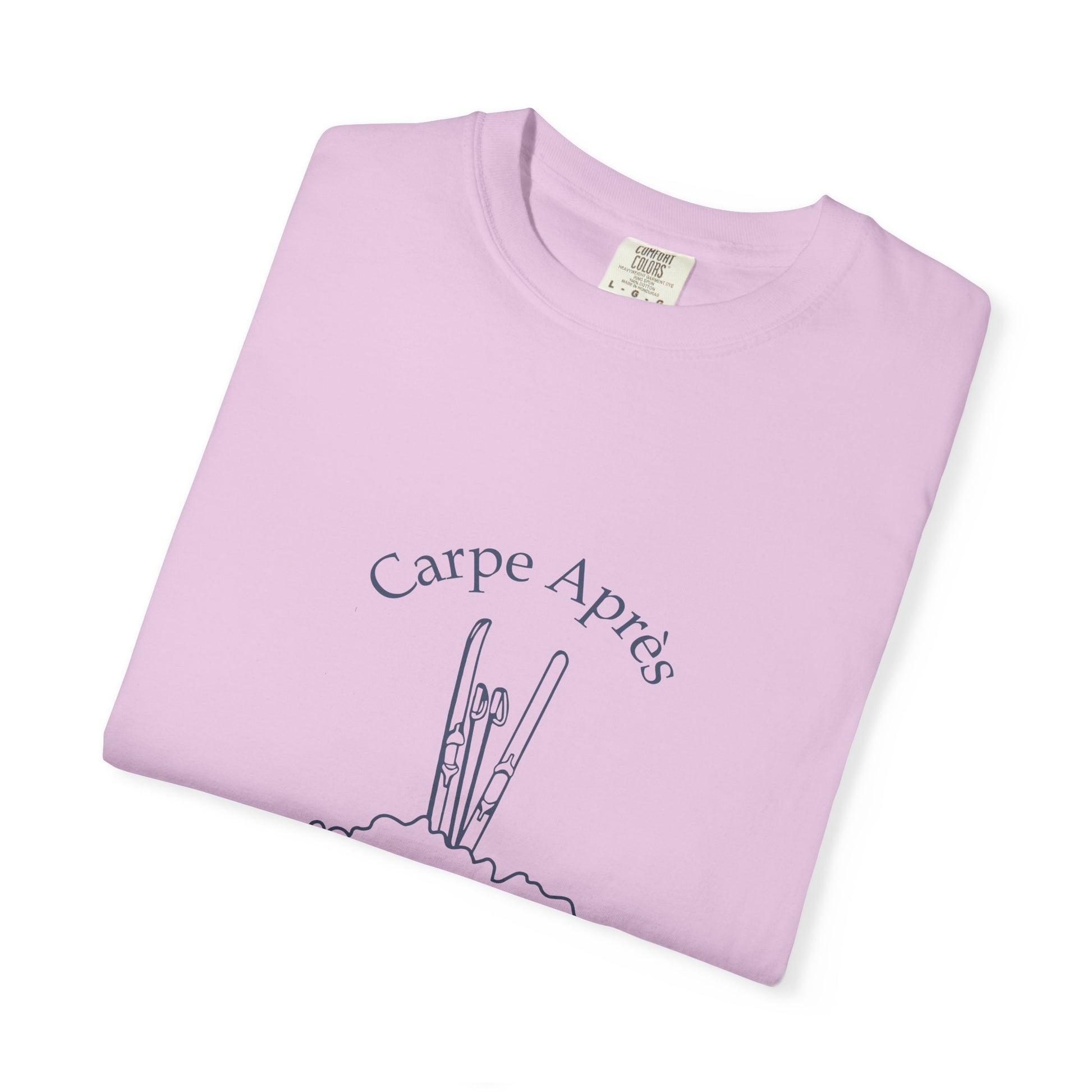 What's your Après? Enjoy this awesome Comfort Color Tee shirt with the graphic on the front. Made with 100% ring-spun cotton, these personalized long-sleeve shirts come packed with softness and style. Each tee features garment-dyed fabric and a relaxed fit for total comfort in any casual setting. Add your designs and create an instant wardrobe favorite.